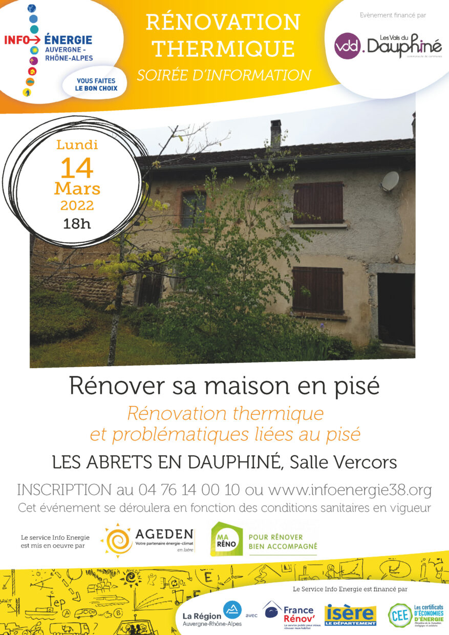 Dans le cadre du service public de la performance énergétique de l’habitat, l’Espace Info Énergie – AGEDEN en partenariat avec Les Vals du Dauphiné vous invite à une :