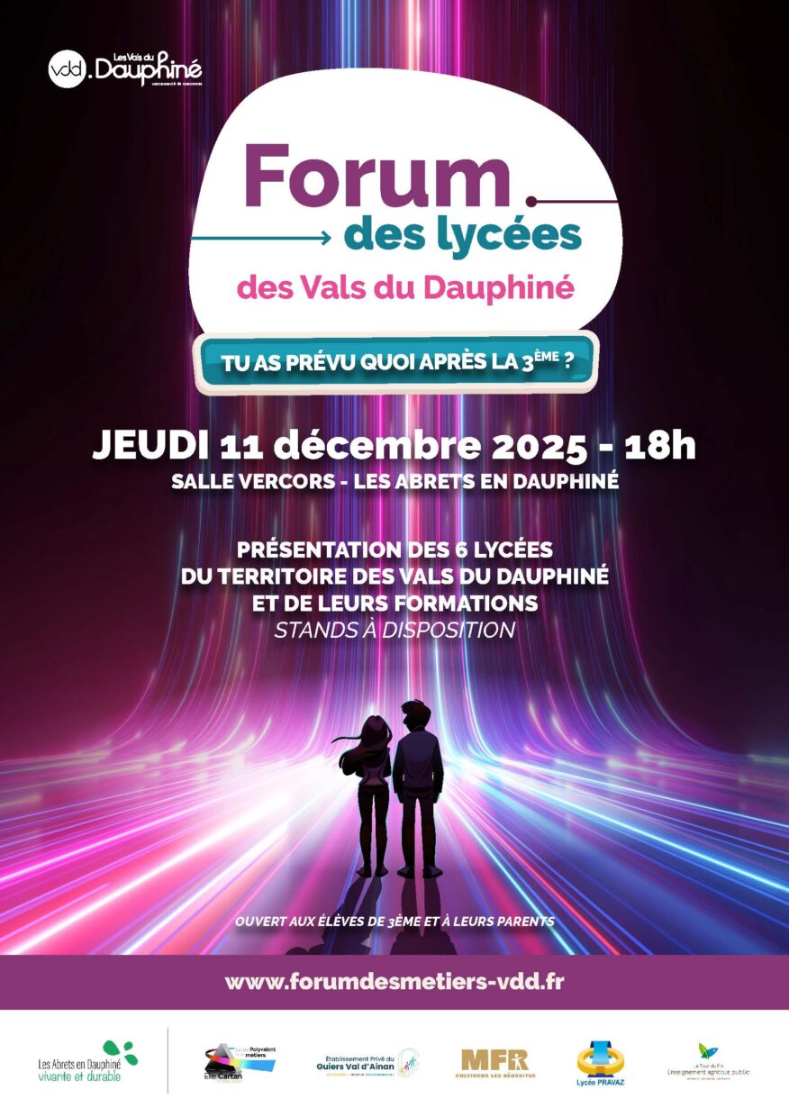 Votre enfant est en 3ème et s’interroge sur son orientation ? Venez découvrir 6 lycées du territoire des Vals du Dauphiné et leurs formations !