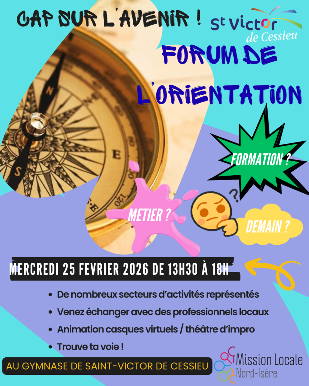 La commune de St Victor de Cessieu, en partenariat avec la Mission locale Nord Isère, organise le Forum de l’orientation