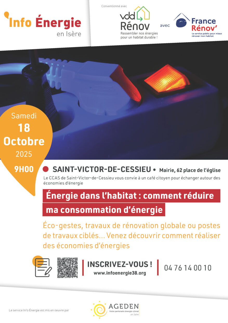 Le CCAS de Saint Victor de Cessieu vous convie à un café citoyen pour échanger sur votre consommation d’énergie dans l’habitat.