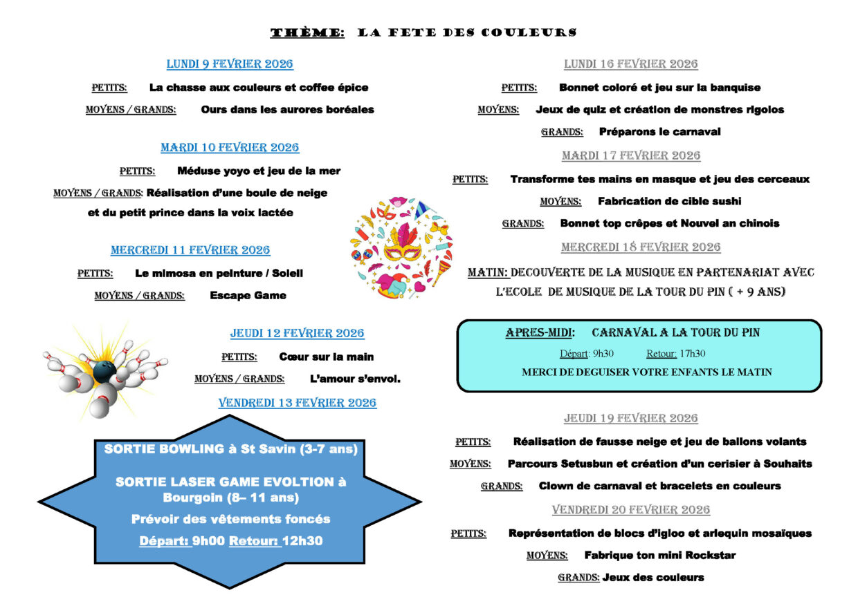 Le programme des vacances