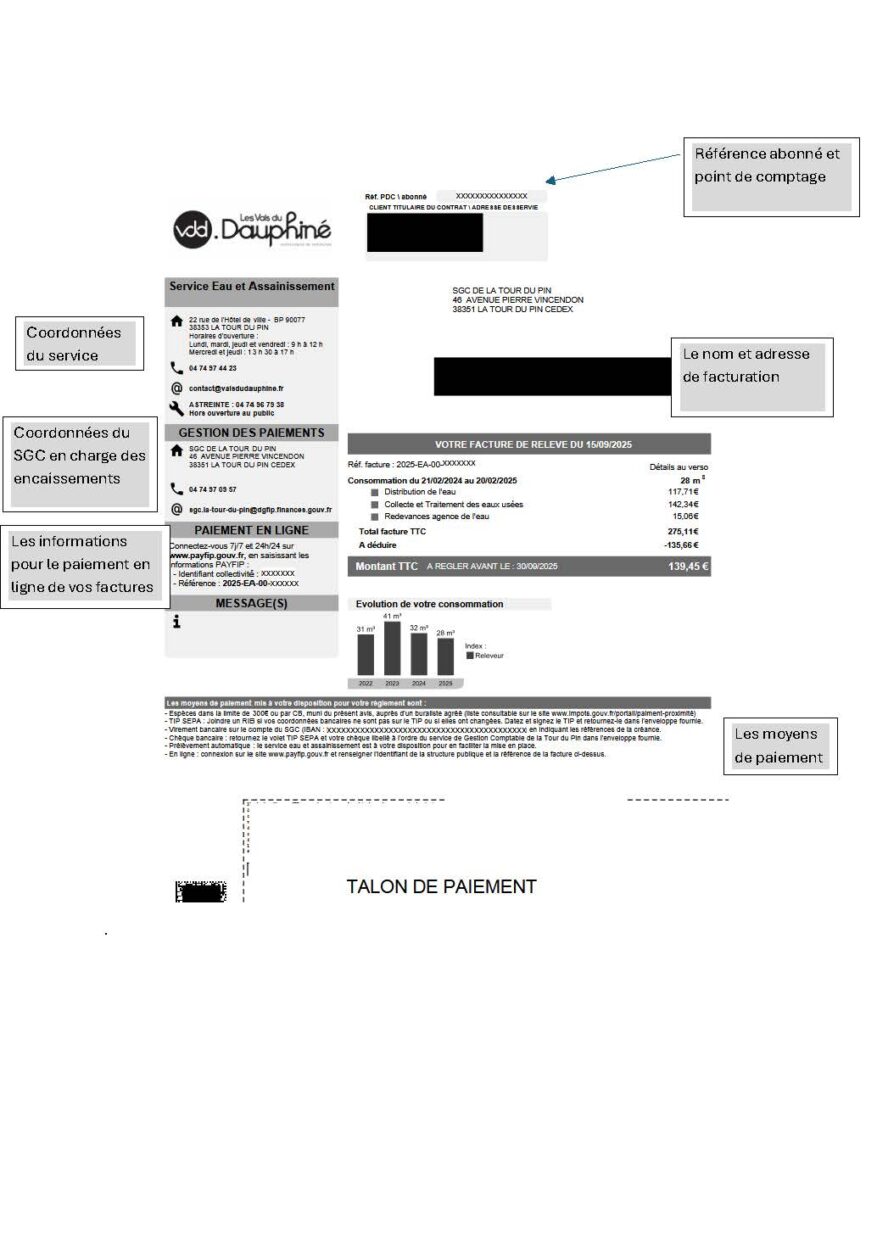 Deux factures par an sont émises : une facture intermédiaire et une facture de solde.