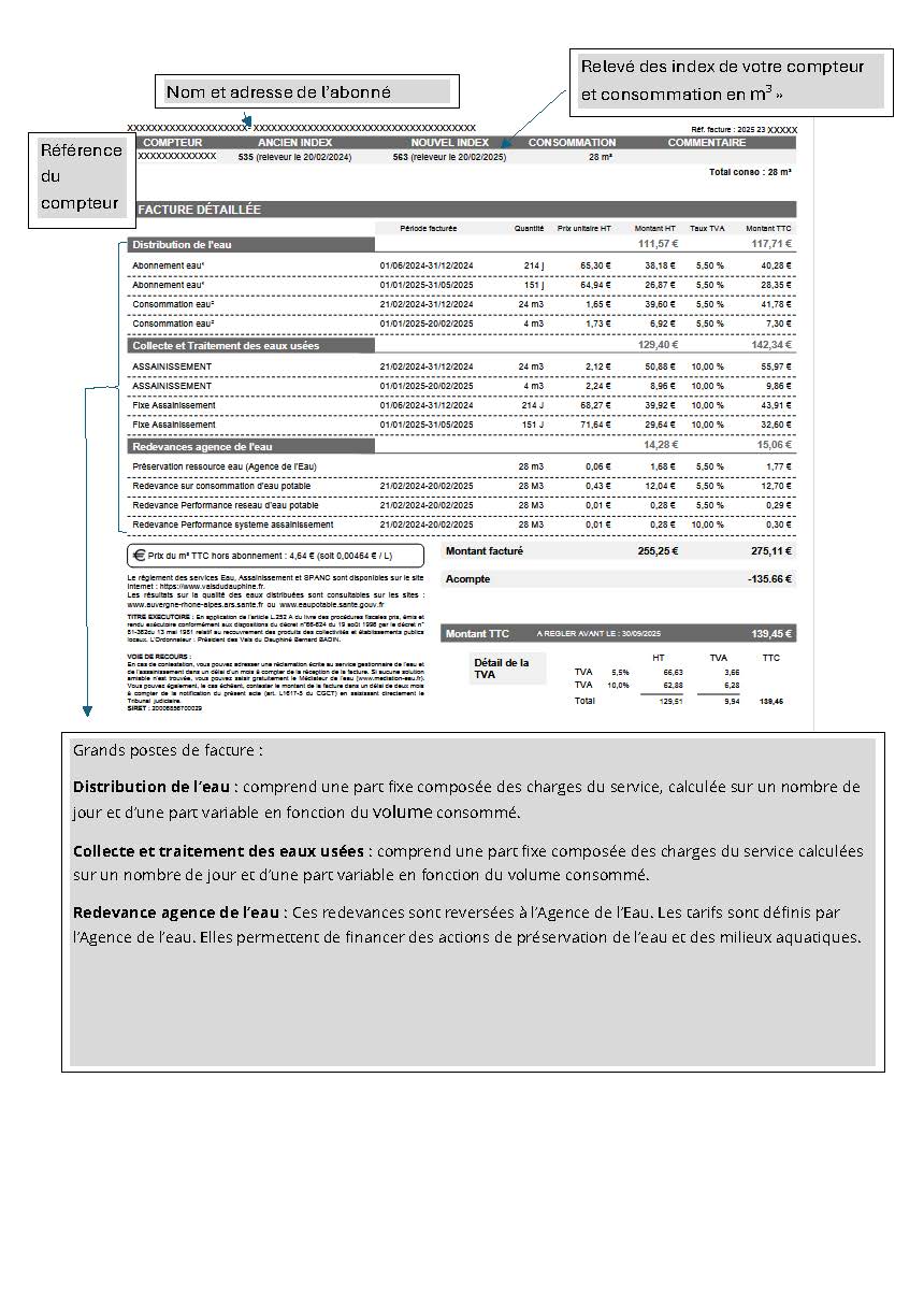 La facture intermédiaire correspond à sept mois d’abonnement plus une part variable estimé à 40 % de la consommation de l’année précédente